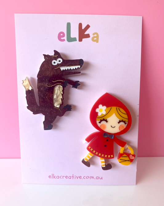 Little Red Riding Hood & Big Bad Wolf Brooch Set